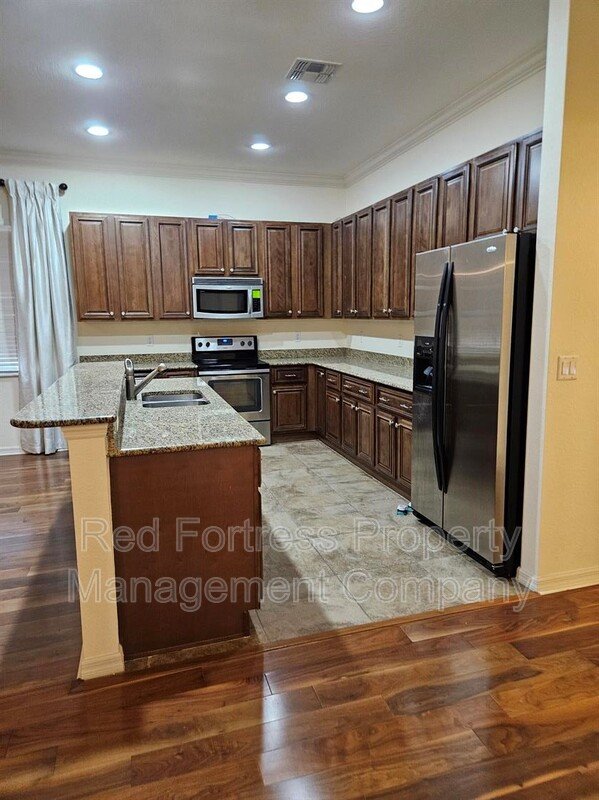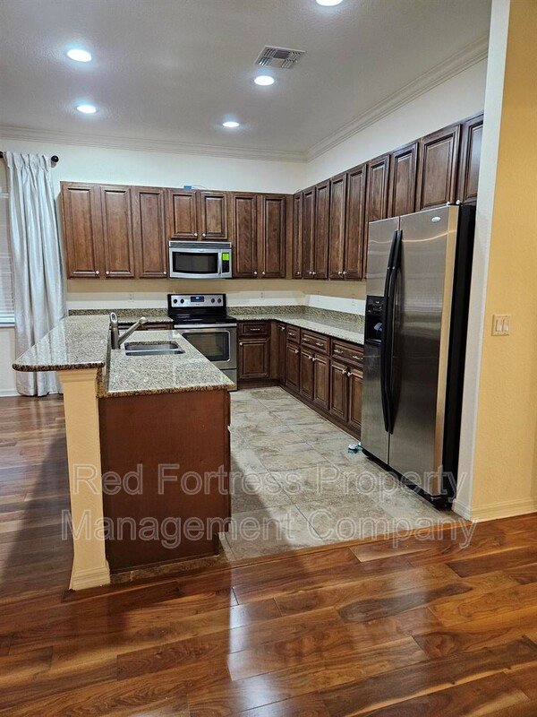 Step inside to an open-concept layout featuring a bright living area, a modern kitchen with stainless steel appliances, granite countertops, and a center island perfect for entertaining. The expansive primary suite includes a walk-in closet and a luxurious en-suite bath with dual sinks and a walk-in shower.